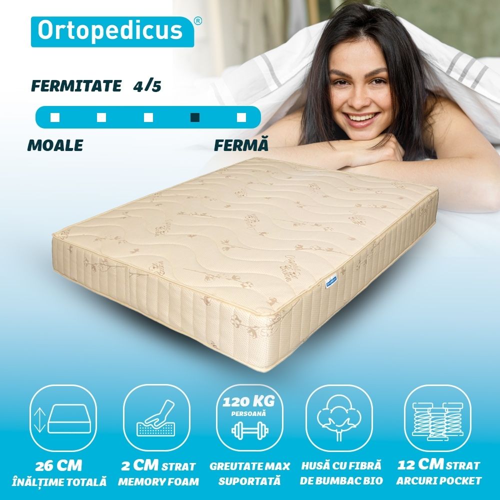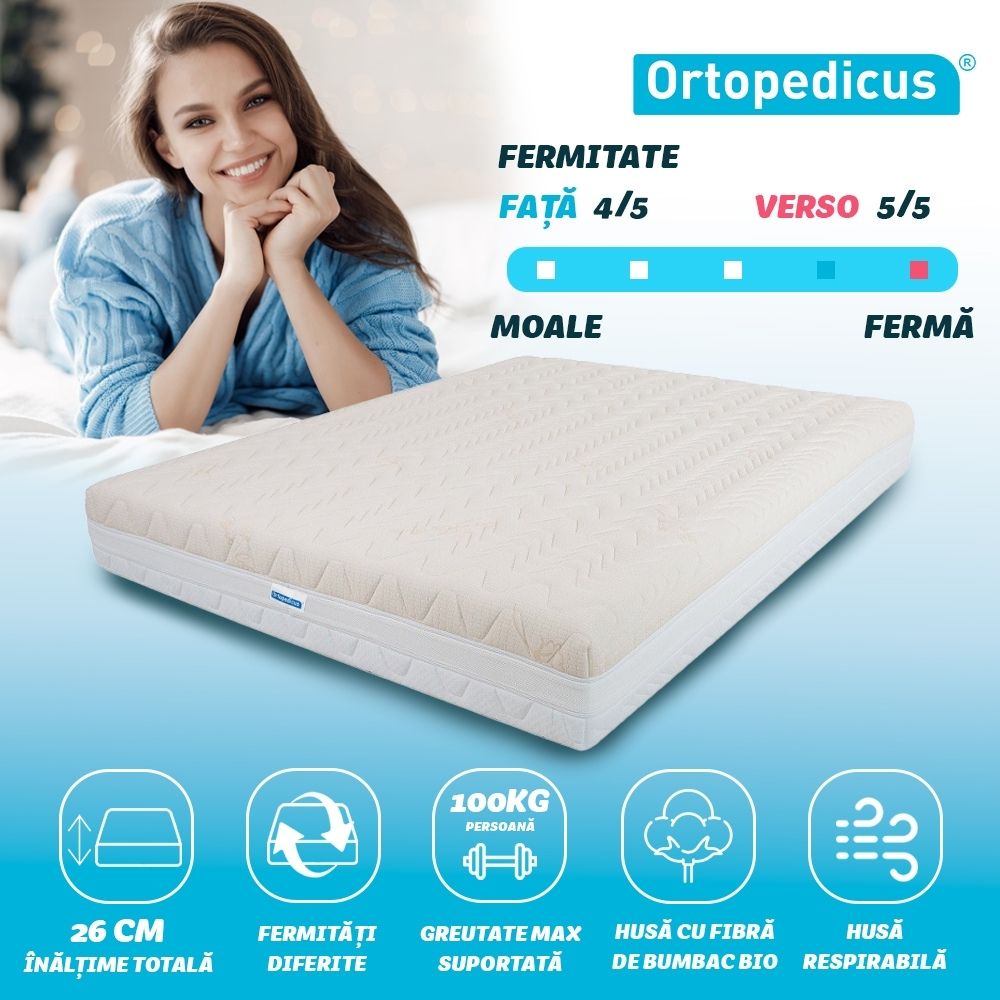 Saltea de pat Ortopedică , Bio Bumbac Reversibilă, 26 cm