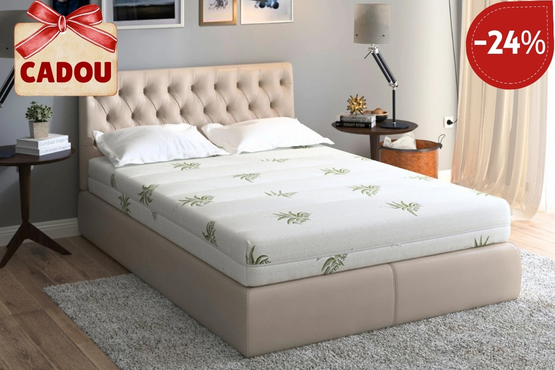 • Structură în 3 straturi – poliuretan (19 cm), spumă High Resilience (2 cm), spumă cu memorie (3 cm).